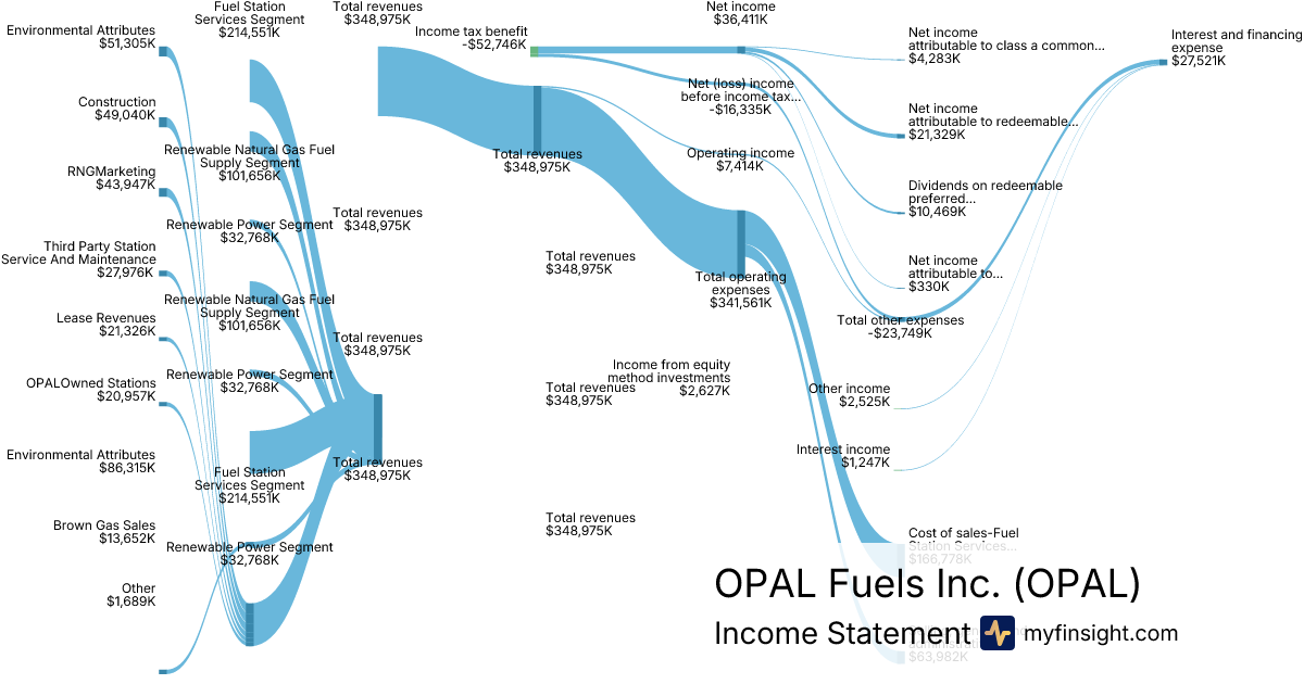 For the year ending 2025-12-31, OPAL made $348,975K in revenue. $4,283K in net income. Net profit margin of 1.23%.