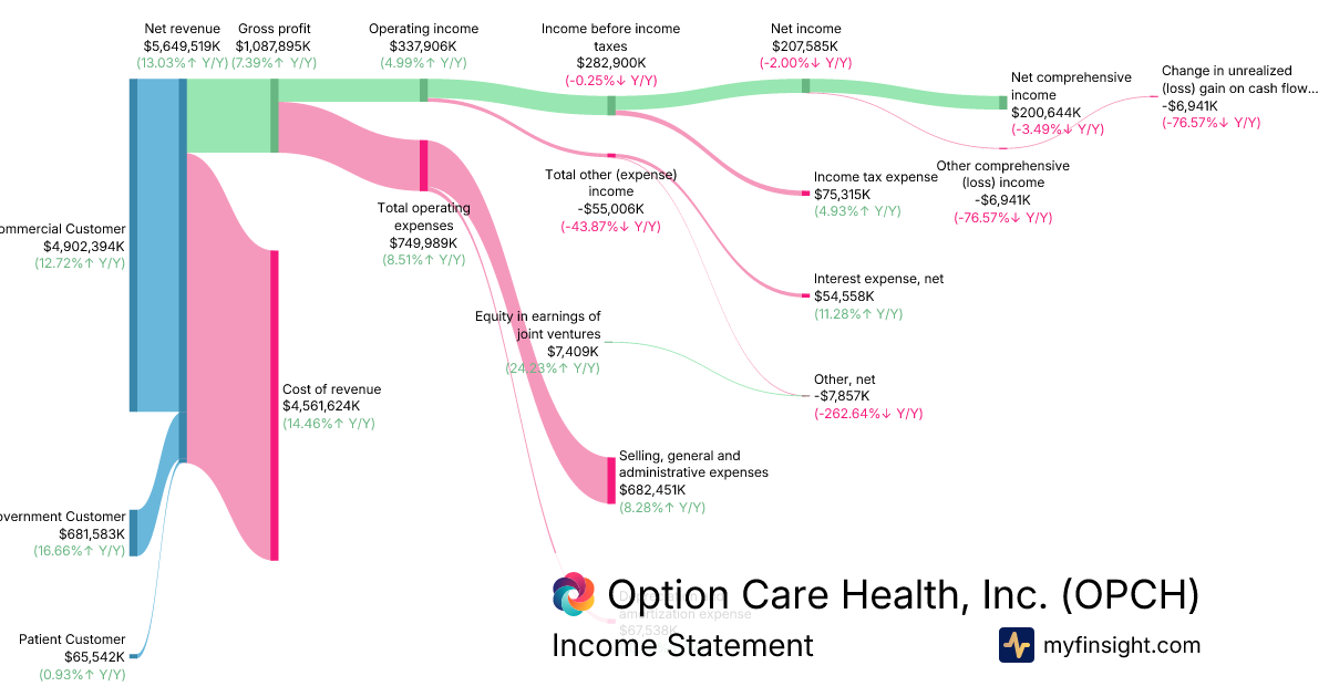 For the year ending 2025-12-31, OPCH made $5,649,519K in revenue. $200,644K in net income. Net profit margin of 3.55%.