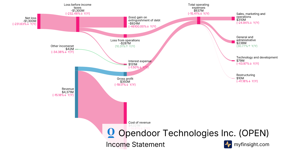 For the year ending 2025-12-31, OPEN made $4,371M in revenue. -$1,300M in net income. Net profit margin of -29.74%.
