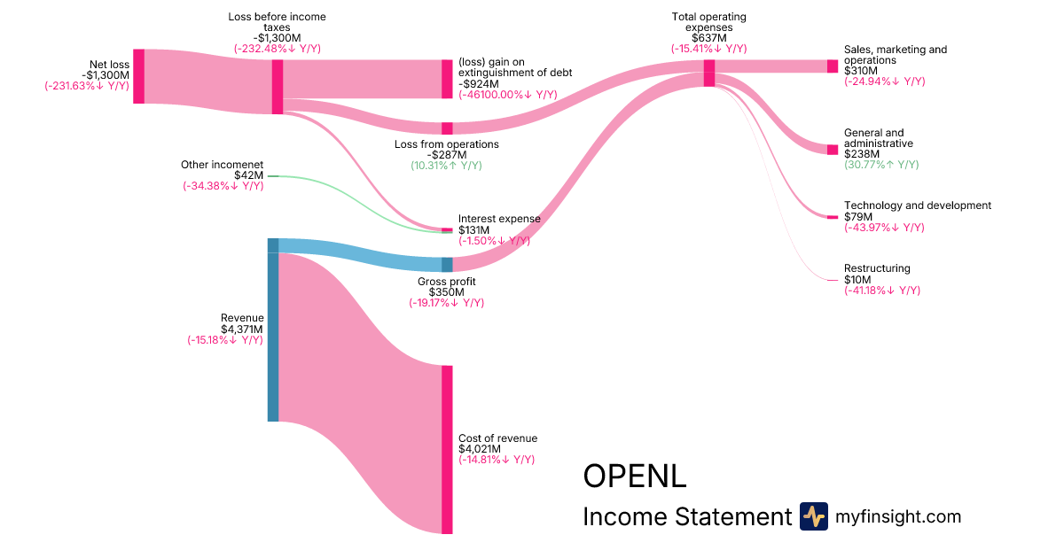 For the year ending 2025-12-31, OPENL made $4,371M in revenue. -$1,300M in net income. Net profit margin of -29.74%.