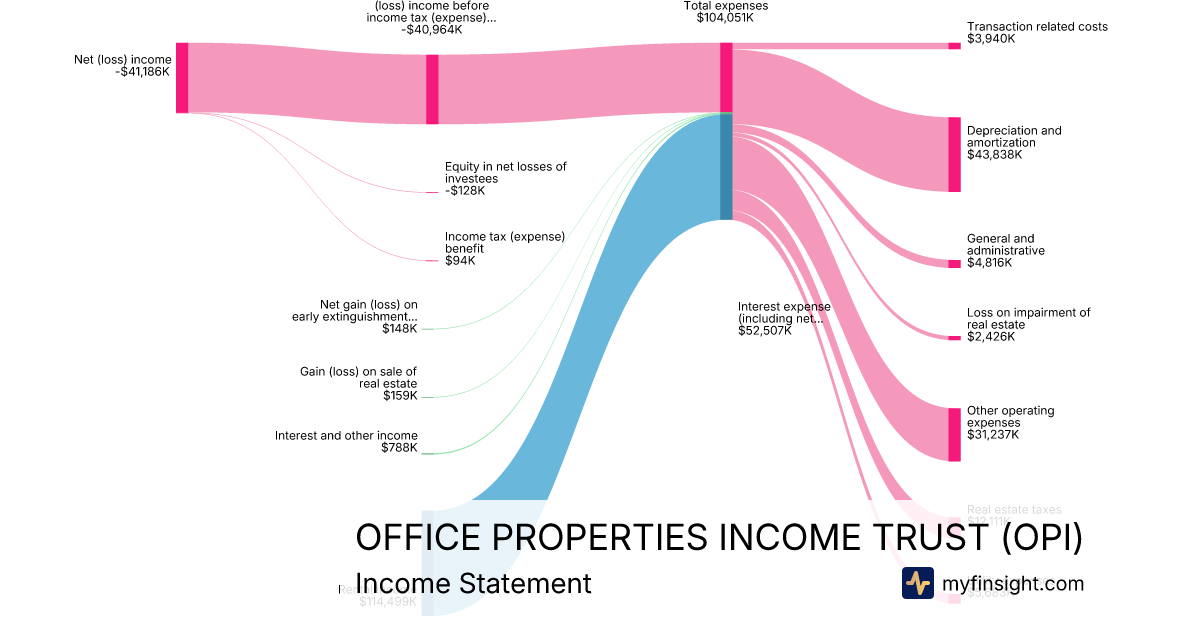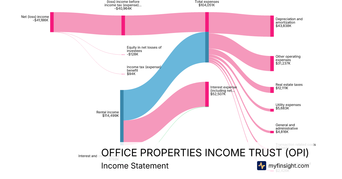 For the quarter ending 2025-06-30, OPI made $114,499K in revenue. -$41,186K in net income. Net profit margin of -35.97%.