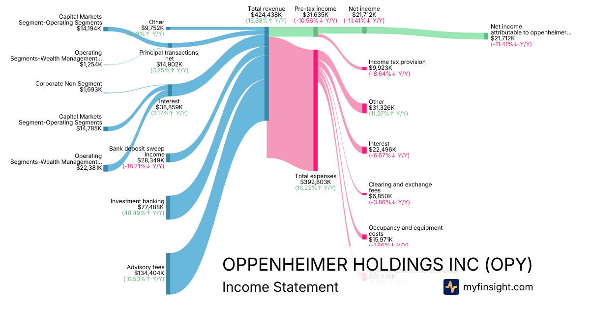 For the quarter ending 2025-09-30, OPY made $424,438K in revenue. $21,712K in net income. Net profit margin of 5.12%.