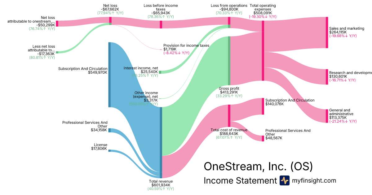 For the year ending 2025-12-31, OS made $601,934K in revenue. -$50,299K in net income. Net profit margin of -8.36%.