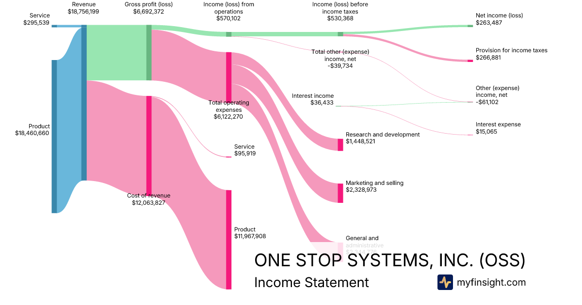 For the quarter ending 2025-09-30, OSS made $18,756,199 in revenue. $263,487 in net income. Net profit margin of 1.40%.
