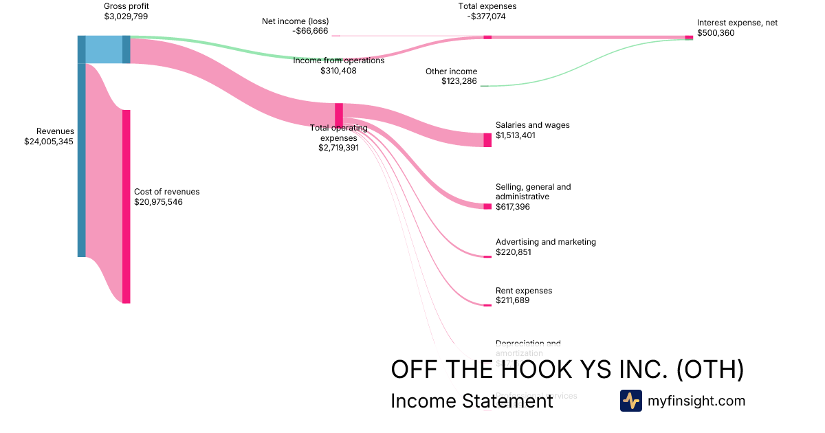 For the quarter ending 2025-09-30, OTH made $24,005,345 in revenue. -$66,666 in net income. Net profit margin of -0.28%.