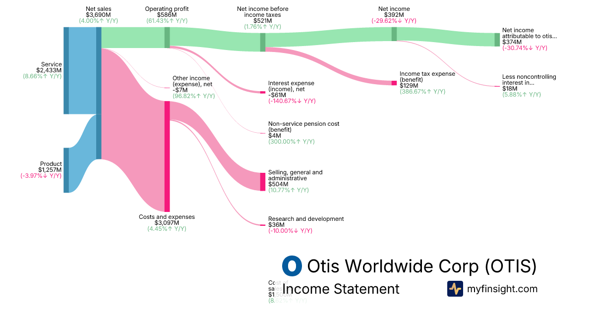 | Net income attributable to otis worldwide corporation | 374 | 393 | 243 | 540 |