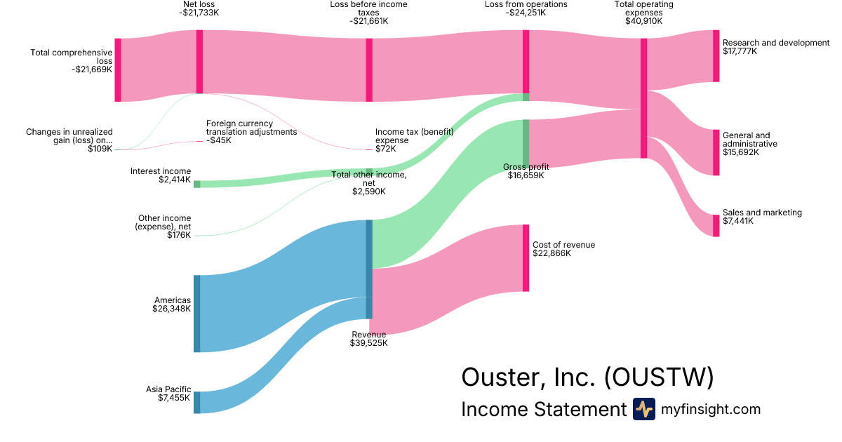 For the quarter ending 2025-09-30, OUSTW made $39,525K in revenue. -$21,669K in net income. Net profit margin of -54.82%.