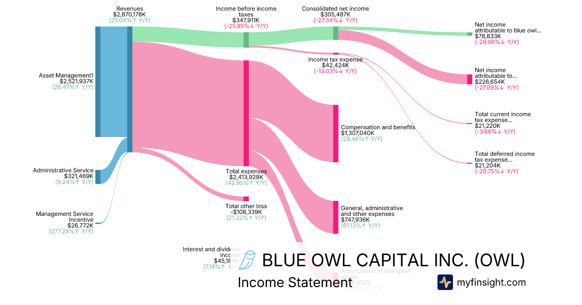 For the year ending 2025-12-31, OWL made $2,870,178K in revenue. $78,833K in net income. Net profit margin of 2.75%.