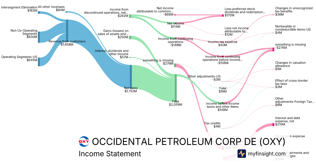 For the year ending 2025-12-31, OXY made $21,593M in revenue. $1,647M in net income. Net profit margin of 7.63%.