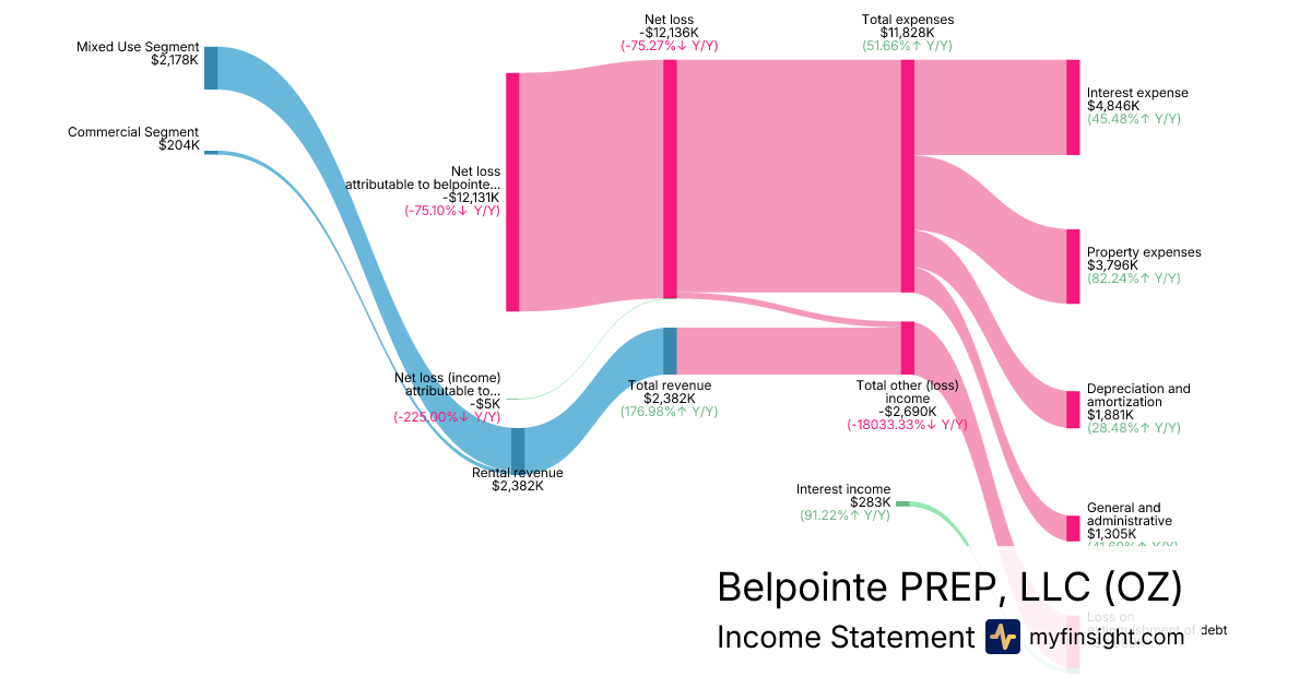 For the quarter ending 2025-09-30, OZ made $2,382K in revenue. -$12,131K in net income. Net profit margin of -509.28%.
