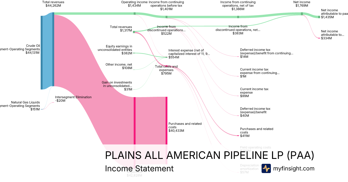 For the year ending 2025-12-31, PAA made $44,262M in revenue. $1,435M in net income. Net profit margin of 3.24%.