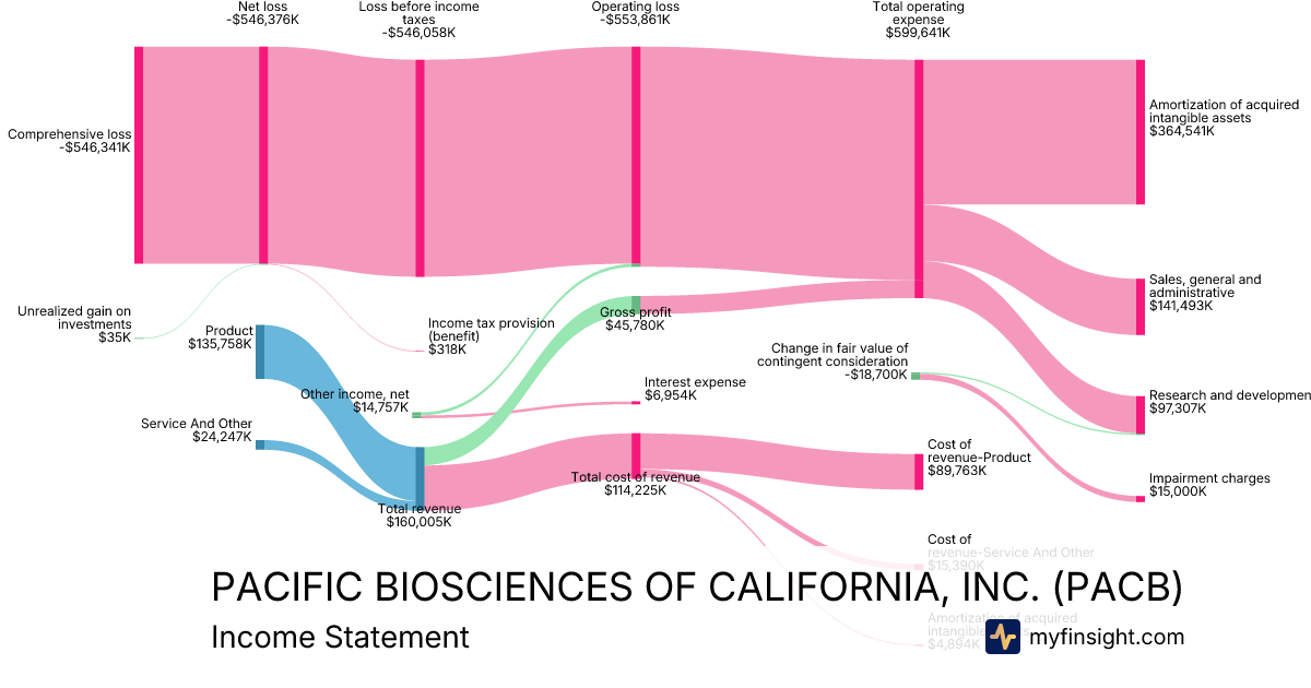 For the year ending 2025-12-31, PACB made $160,005K in revenue. -$546,341K in net income. Net profit margin of -341.45%.