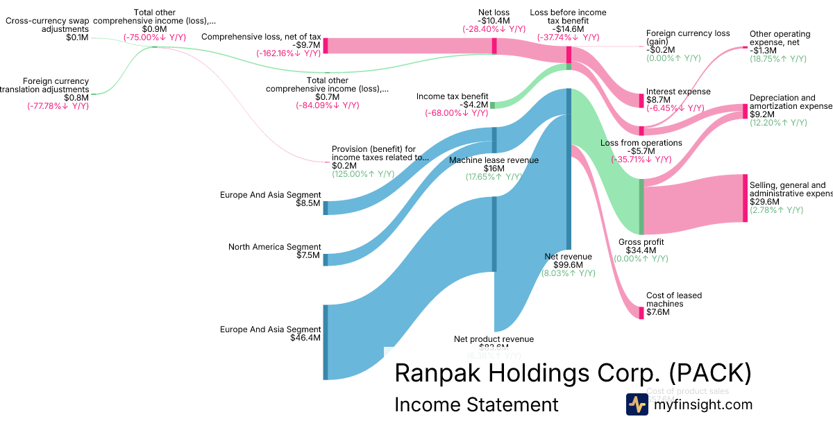 For the quarter ending 2025-09-30, PACK made $99.6M in revenue. -$9.7M in net income. Net profit margin of -9.74%.