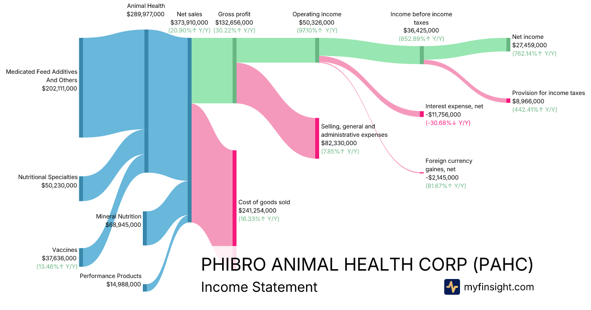 For the quarter ending 2025-12-31, PAHC made $373,910,000 in revenue. $27,459,000 in net income. Net profit margin of 7.34%.