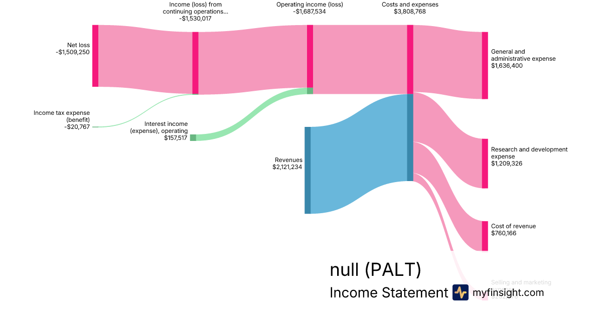 For the quarter ending 2024-09-30, PALT made $2,121,234 in revenue. -$1,509,250 in net income. Net profit margin of -71.15%.