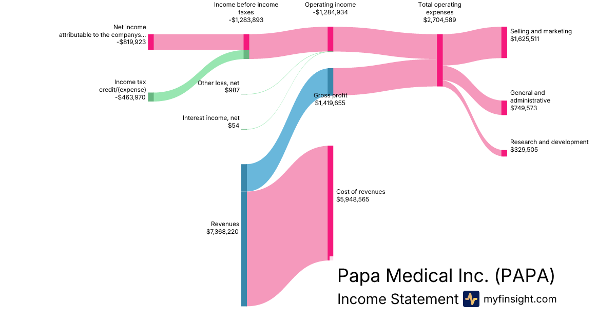 For the quarter ending 2025-09-30, PAPA made $7,368,220 in revenue. -$819,923 in net income. Net profit margin of -11.13%.