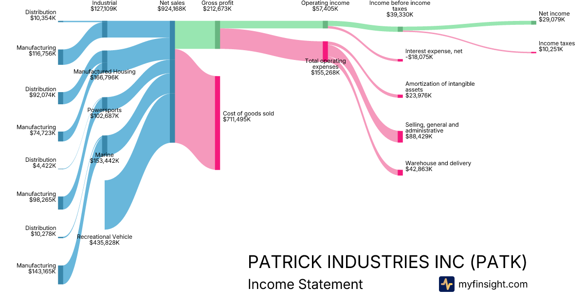 For the year ending 2025-12-31, PATK made $3,950,773K in revenue. $135,056K in net income. Net profit margin of 3.42%.