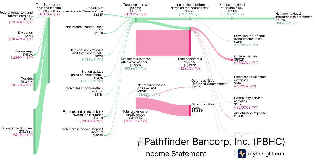 | Net income (loss) attributable to pathfinder bancorp inc | 626 | 31 | 2,974 | -4,644 |