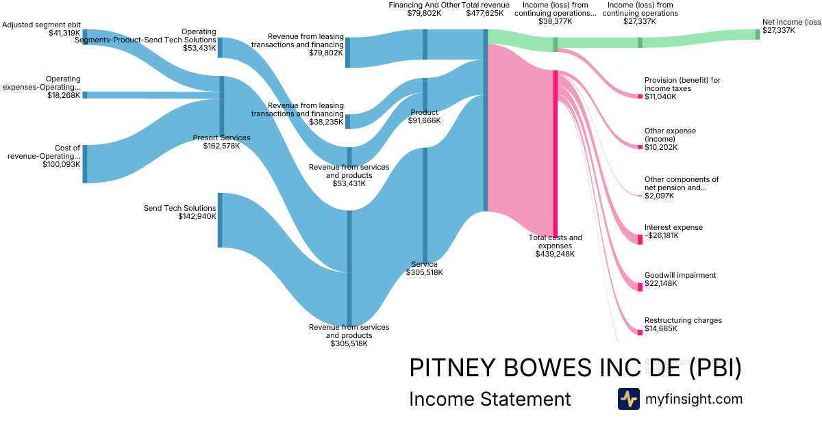For the year ending 2025-12-31, PBI made $1,892,629K in revenue. $144,697K in net income. Net profit margin of 7.65%.
