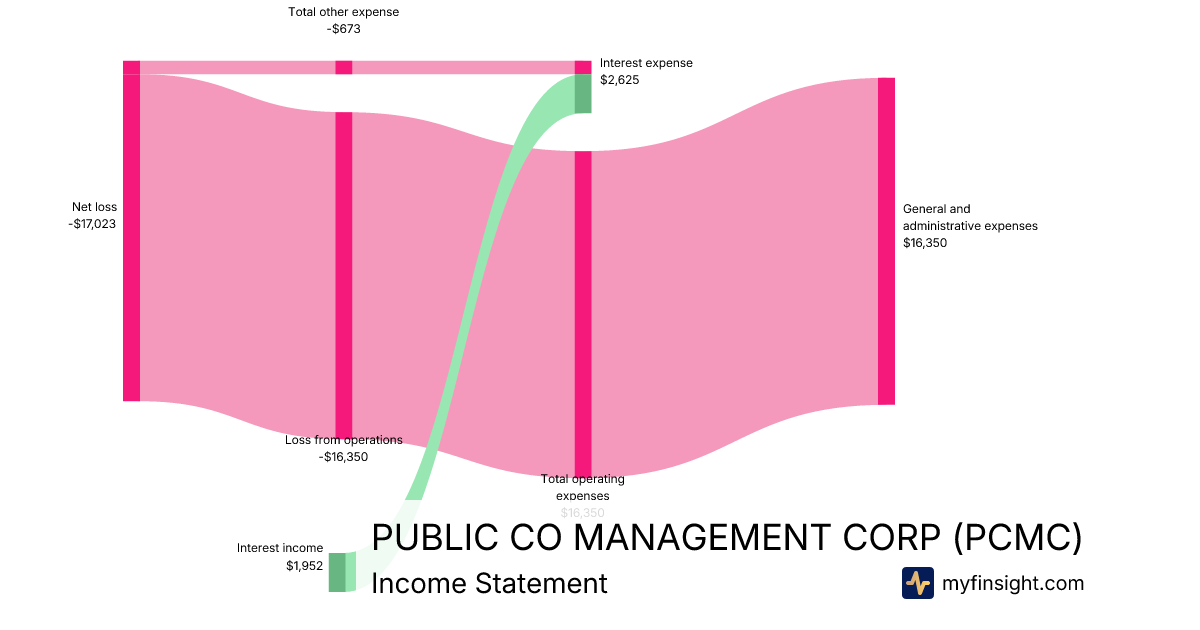 For the quarter ending 2025-12-31, PCMC made $18,302 in revenue. -$17,023 in net income. Net profit margin of -93.01%.