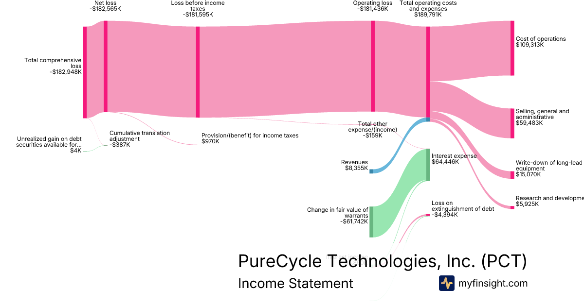 For the year ending 2025-12-31, PCT made $8,355K in revenue. -$182,948K in net income. Net profit margin of -2189.68%.