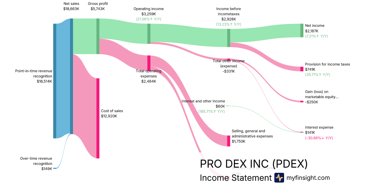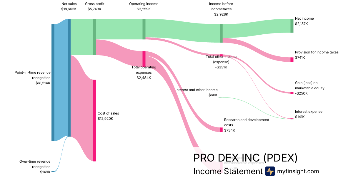 For the quarter ending 2025-12-31, PDEX made $18,663K in revenue. $2,187K in net income. Net profit margin of 11.72%.