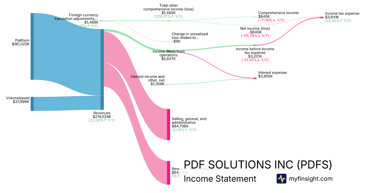 For the year ending 2025-12-31, PDFS made $219,024K in revenue. $840K in net income. Net profit margin of 0.38%.