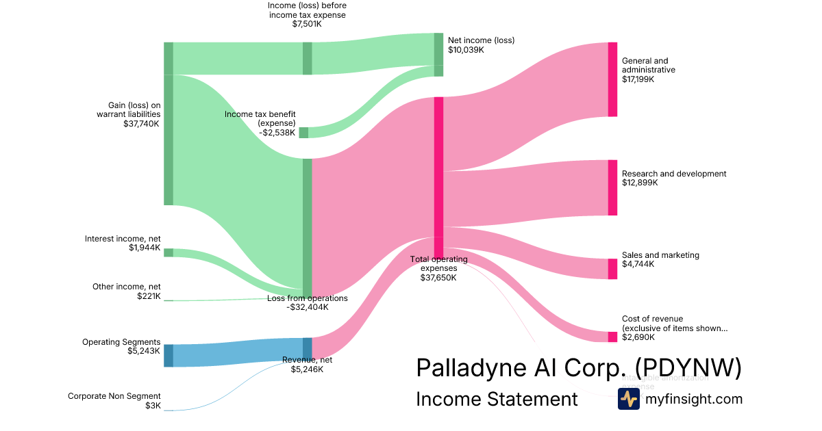 For the year ending 2025-12-31, PDYNW made $5,246K in revenue. $10,039K in net income. Net profit margin of 191.36%.