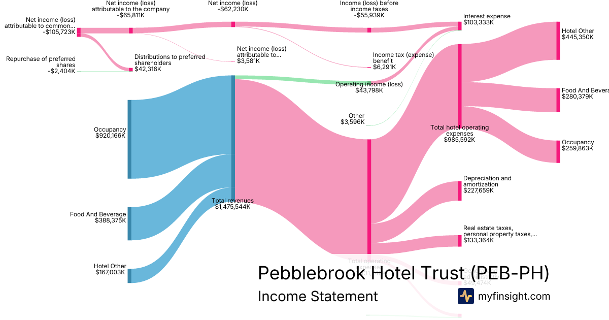 For the year ending 2025-12-31, PEB-PH made $1,475,544K in revenue. -$105,723K in net income. Net profit margin of -7.17%.