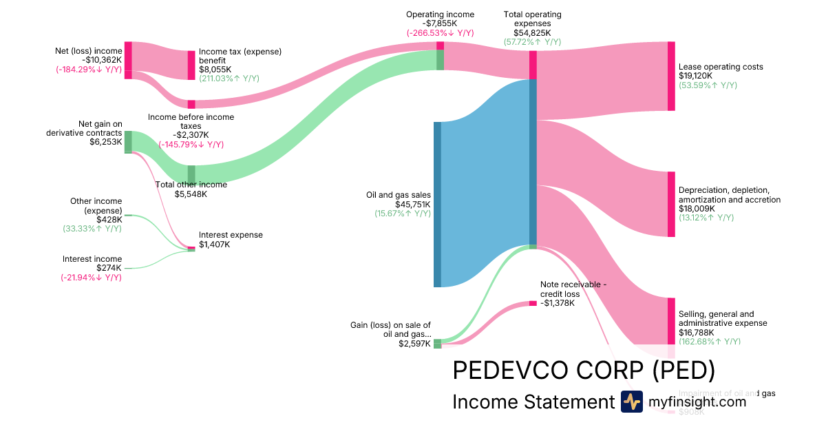 For the year ending 2025-12-31, PED made $45,751K in revenue. -$10,362K in net income. Net profit margin of -22.65%.