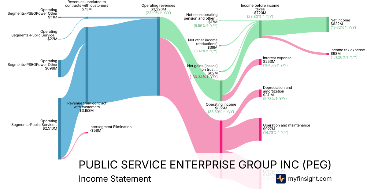 For the quarter ending 2025-09-30, PEG made $3,226,000K in revenue. $622,000K in net income. Net profit margin of 19.28%.