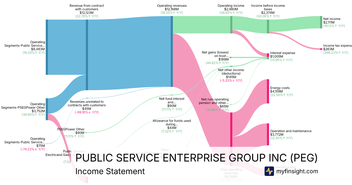 For the year ending 2025-12-31, PEG made $12,168M in revenue. $2,111M in net income. Net profit margin of 17.35%.