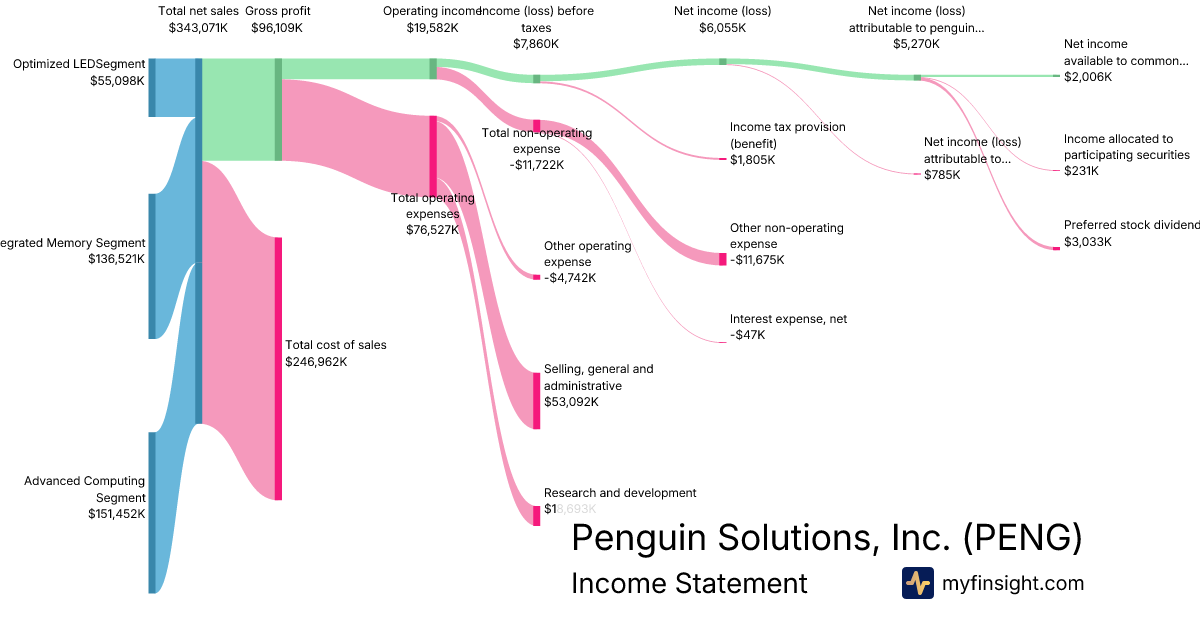 For the quarter ending 2025-11-28, PENG made $343,071K in revenue. $2,006K in net income. Net profit margin of 0.58%.