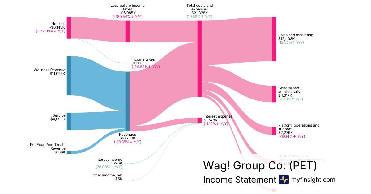 For the quarter ending 2025-06-30, PET made $16,720K in revenue. -$6,145K in net income. Net profit margin of -36.75%.