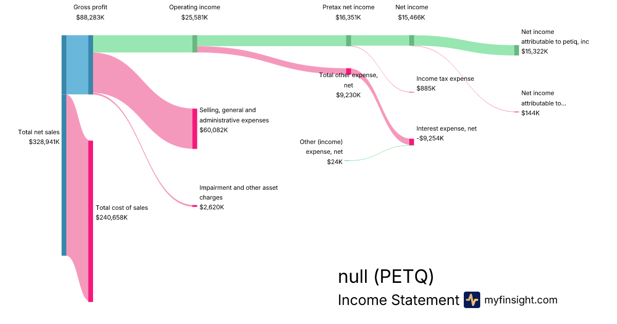 For the quarter ending 2024-06-30, PETQ made $328,941K in revenue. $15,322K in net income. Net profit margin of 4.66%.