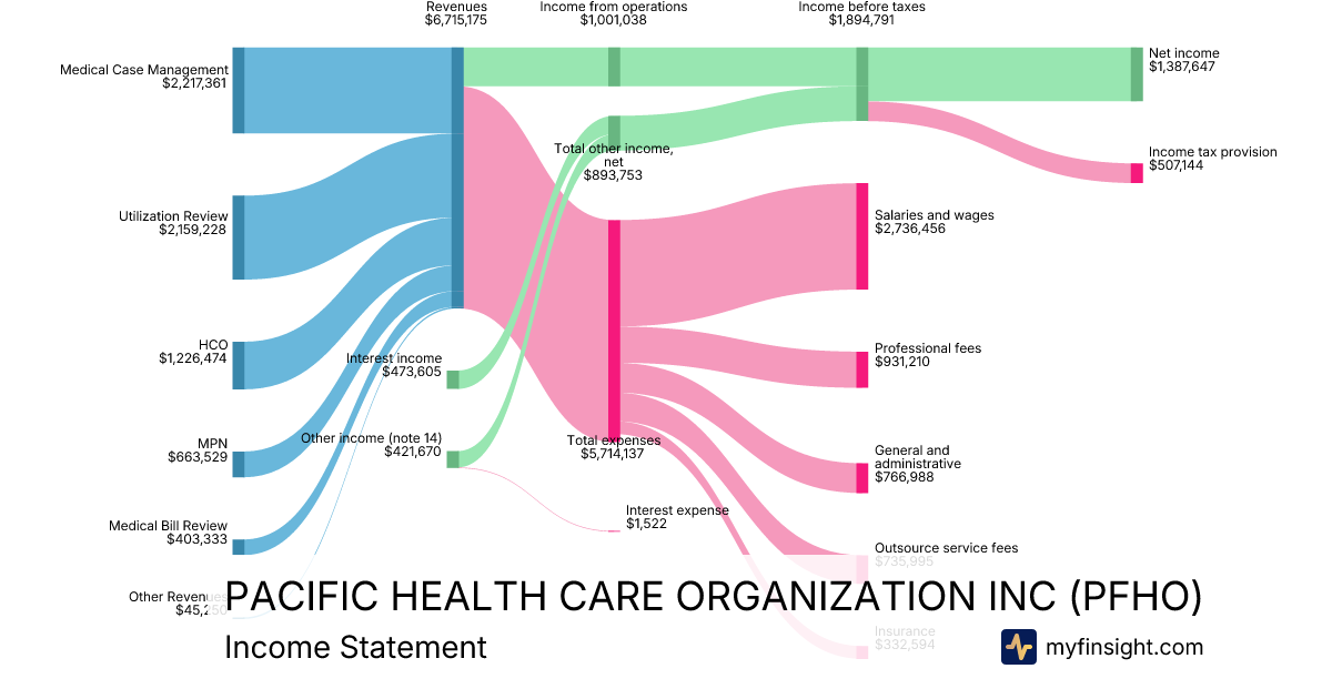 For the year ending 2025-12-31, PFHO made $6,715,175 in revenue. $1,387,647 in net income. Net profit margin of 20.66%.