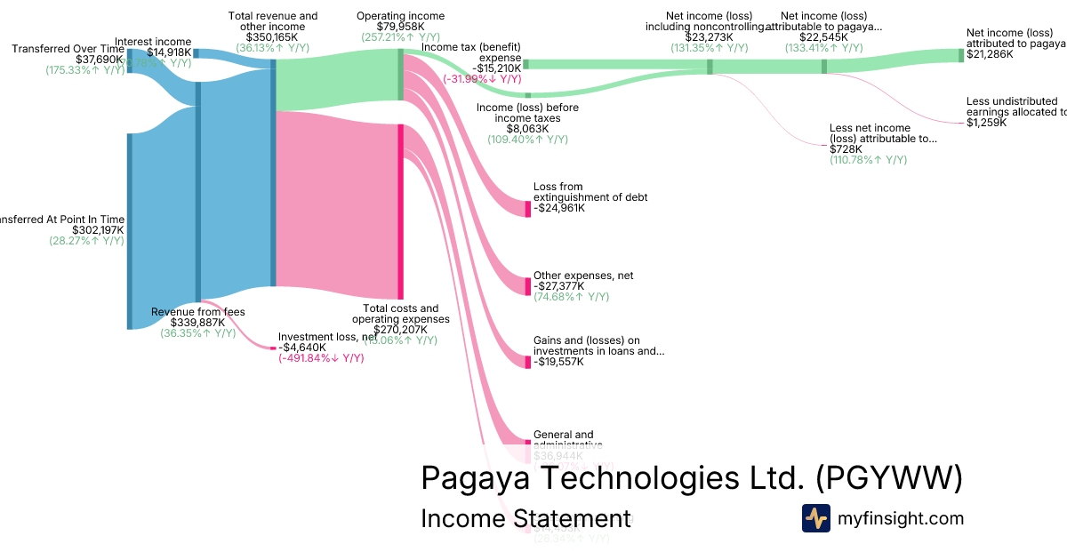 For the quarter ending 2025-09-30, PGYWW made $350,165K in revenue. $21,286K in net income. Net profit margin of 6.08%.
