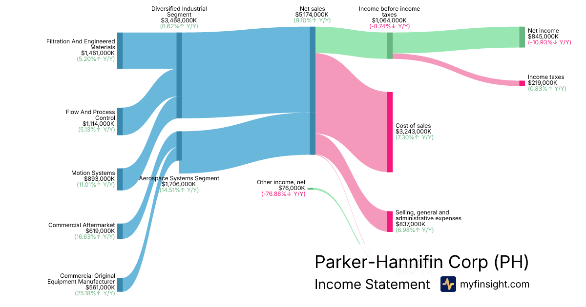 For the quarter ending 2025-12-31, PH made $5,174,000K in revenue. $845,000K in net income. Net profit margin of 16.33%.