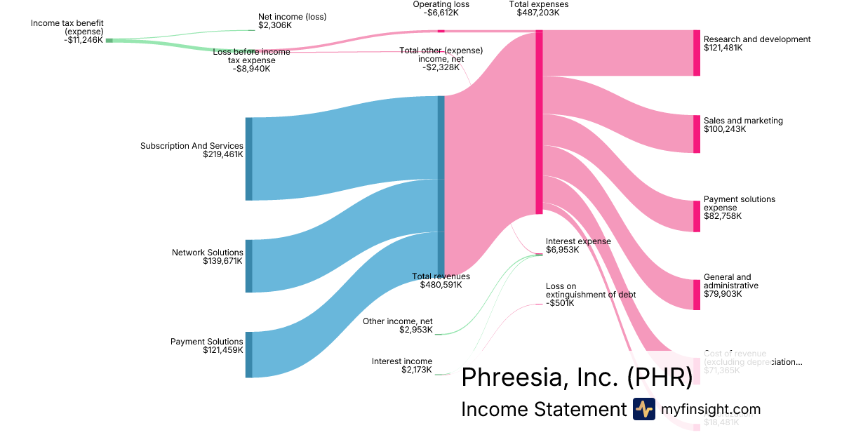 For the year ending 2026-01-31, PHR made $480,591K in revenue. $2,306K in net income. Net profit margin of 0.48%.