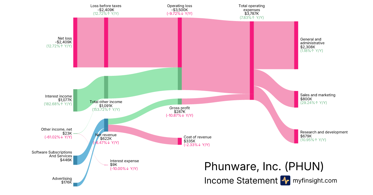 For the quarter ending 2025-09-30, PHUN made $622K in revenue. -$2,409K in net income. Net profit margin of -387.30%.