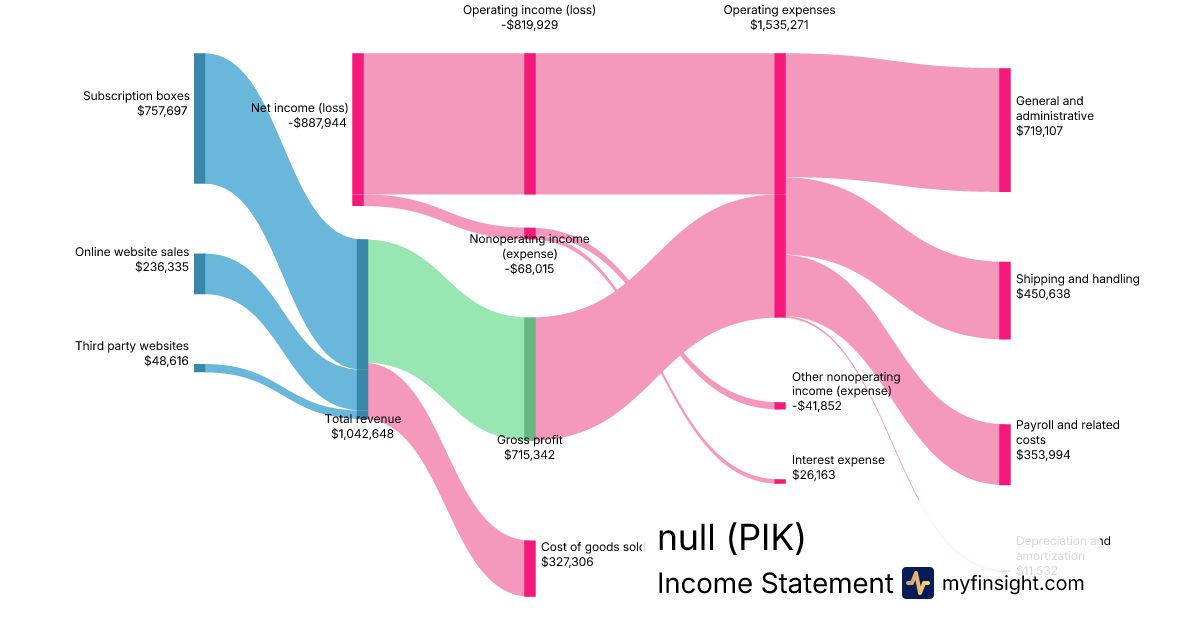 For the quarter ending 2024-09-28, PIK made $1,042,648 in revenue. -$887,944 in net income. Net profit margin of -85.16%.