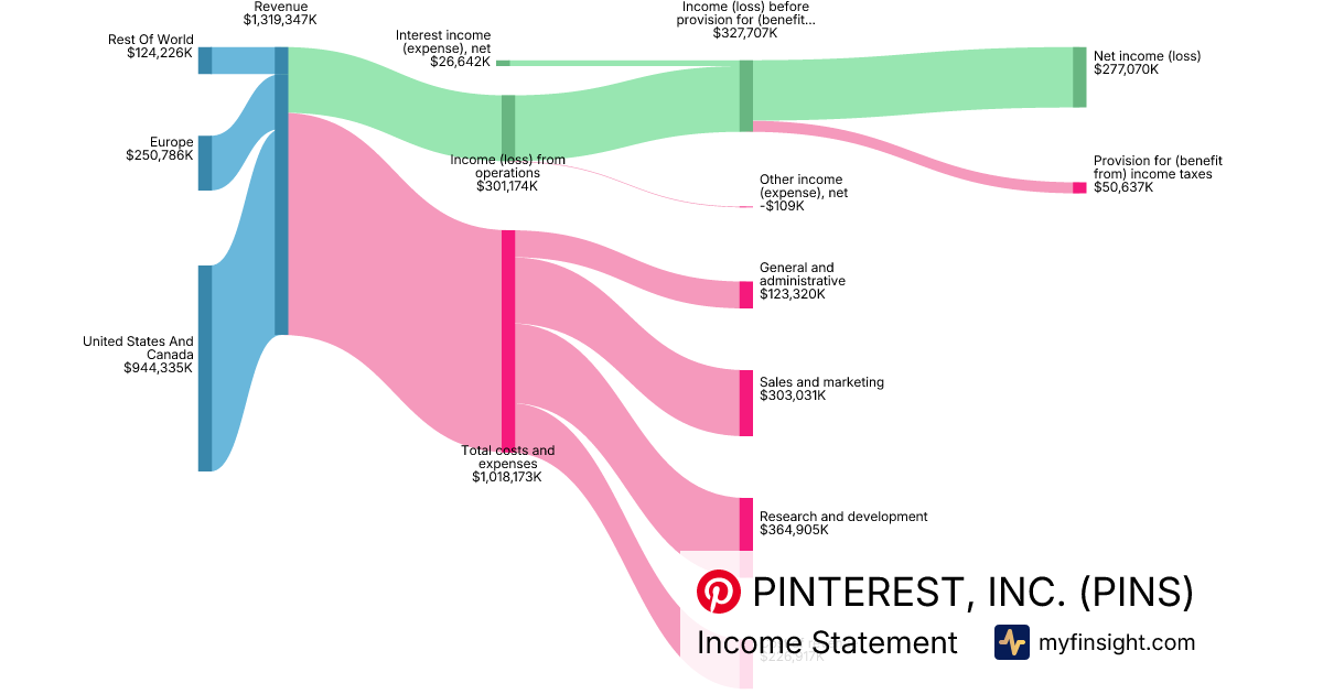 For the year ending 2025-12-31, PINS made $4,221,767K in revenue. $416,855K in net income. Net profit margin of 9.87%.