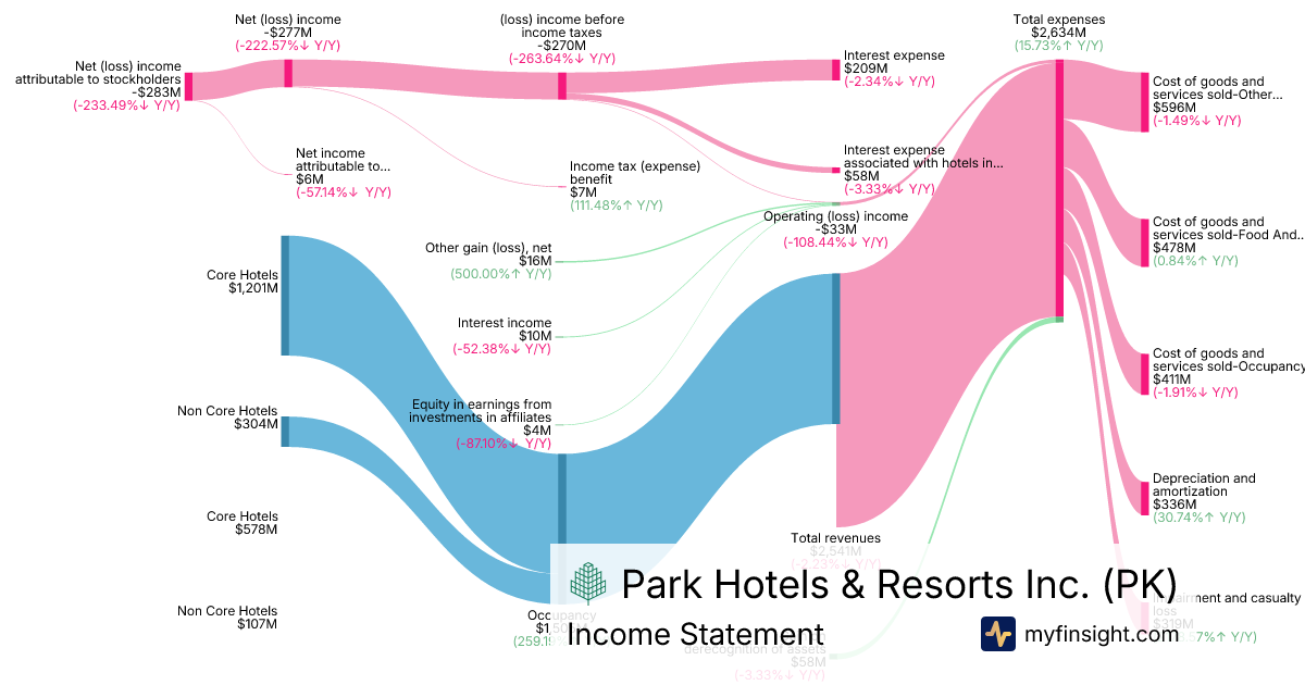 For the year ending 2025-12-31, PK made $2,541M in revenue. -$283M in net income. Net profit margin of -11.14%.