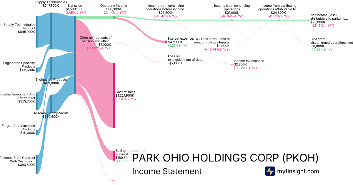 For the year ending 2025-12-31, PKOH made $1,599,100K in revenue. $23,800K in net income. Net profit margin of 1.49%.