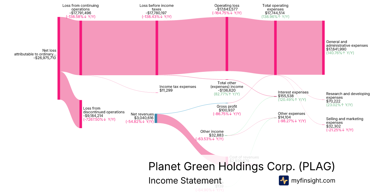 For the year ending 2025-12-31, PLAG made $3,040,616 in revenue. -$26,975,710 in net income. Net profit margin of -887.18%.