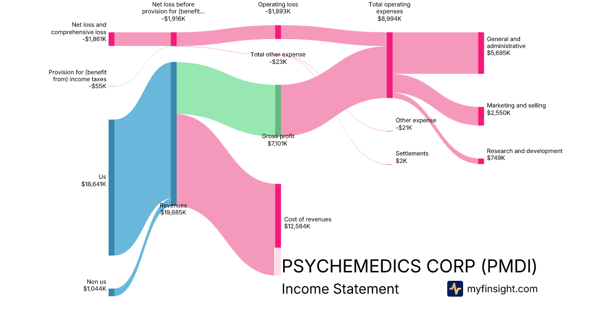 For the year ending 2024-12-31, PMDI made $19,685K in revenue. -$1,861K in net income. Net profit margin of -9.45%.