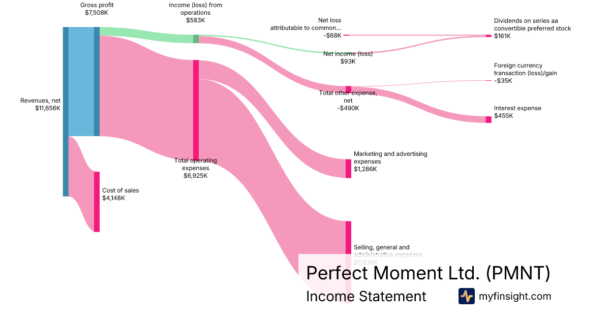 For the quarter ending 2025-12-31, PMNT made $11,656K in revenue. -$68K in net income. Net profit margin of -0.58%.