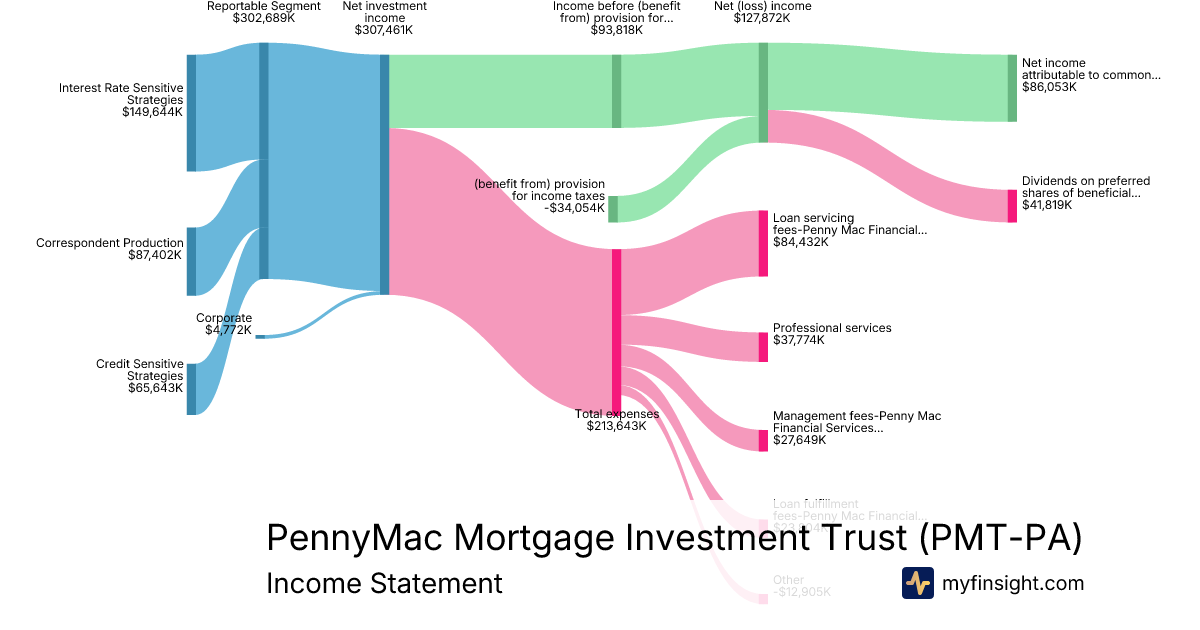 For the year ending 2025-12-31, PMT-PA made $307,461K in revenue. $86,053K in net income. Net profit margin of 27.99%.