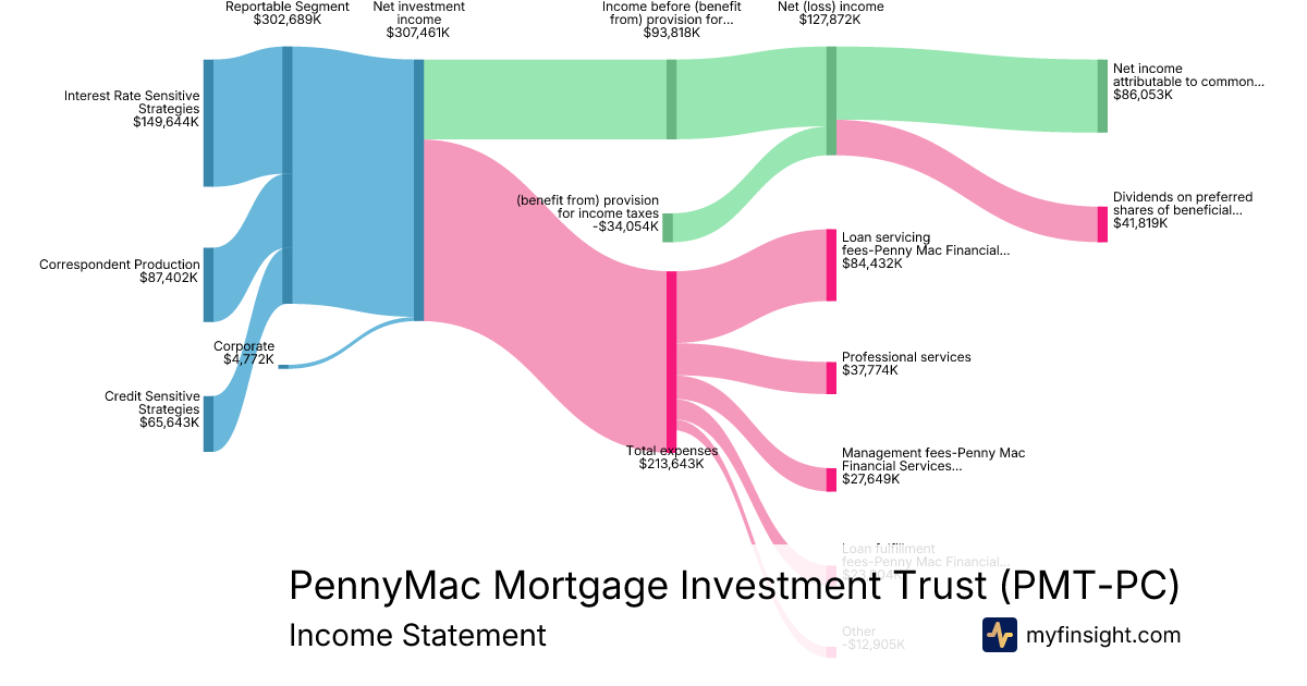 For the year ending 2025-12-31, PMT-PC made $307,461K in revenue. $86,053K in net income. Net profit margin of 27.99%.