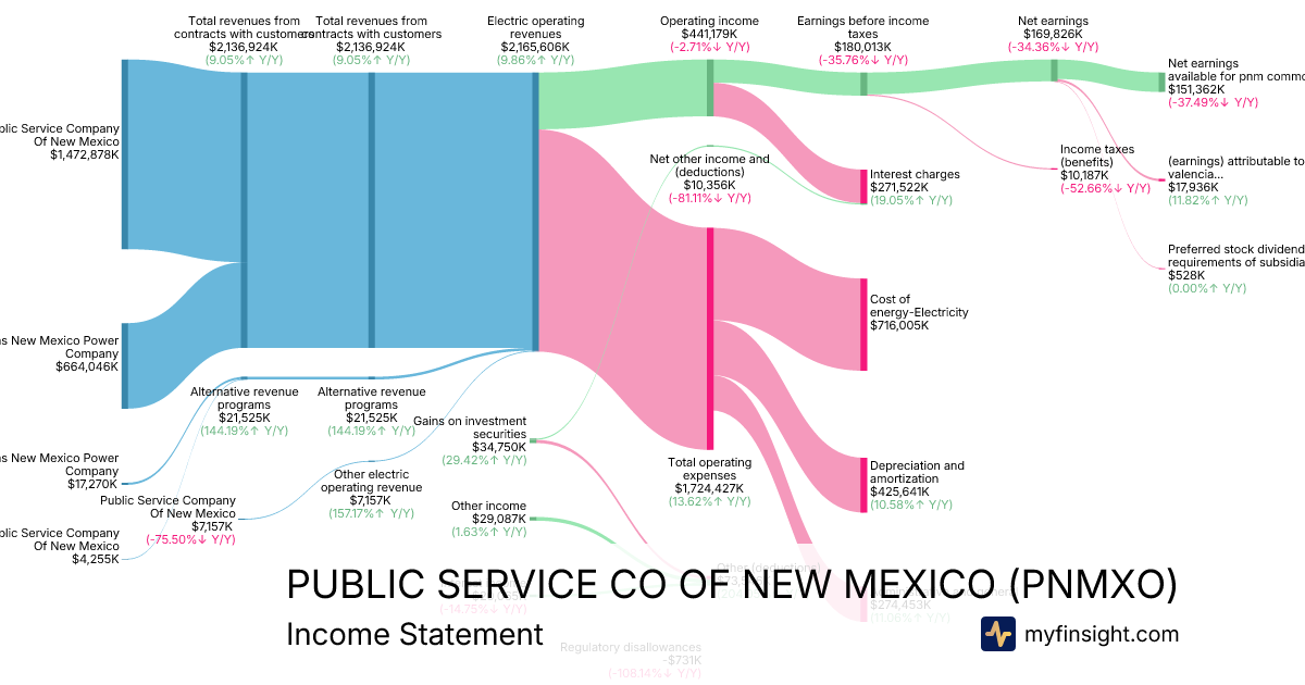 For the year ending 2025-12-31, PNMXO made $2,165,606K in revenue. $151,362K in net income. Net profit margin of 6.99%.